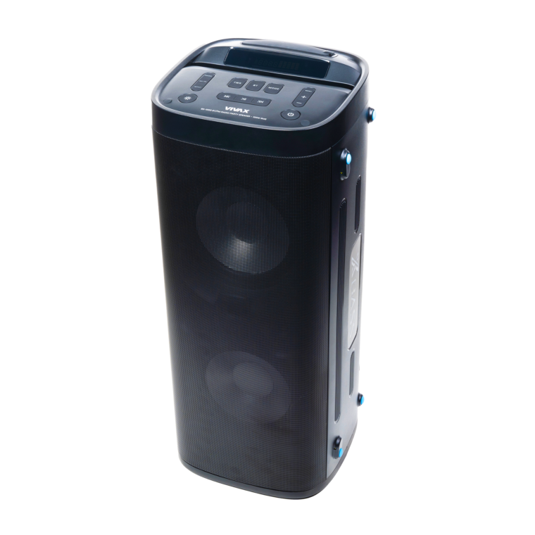 Altoparlant Karaoke VIVAX BS-1000 me 100W, dy mikrofona pa tel, Bluetooth dhe bateri 7500mAh. Tingull i fuqishëm, drita LED dhe funksione të plota karaoke për çdo festë.