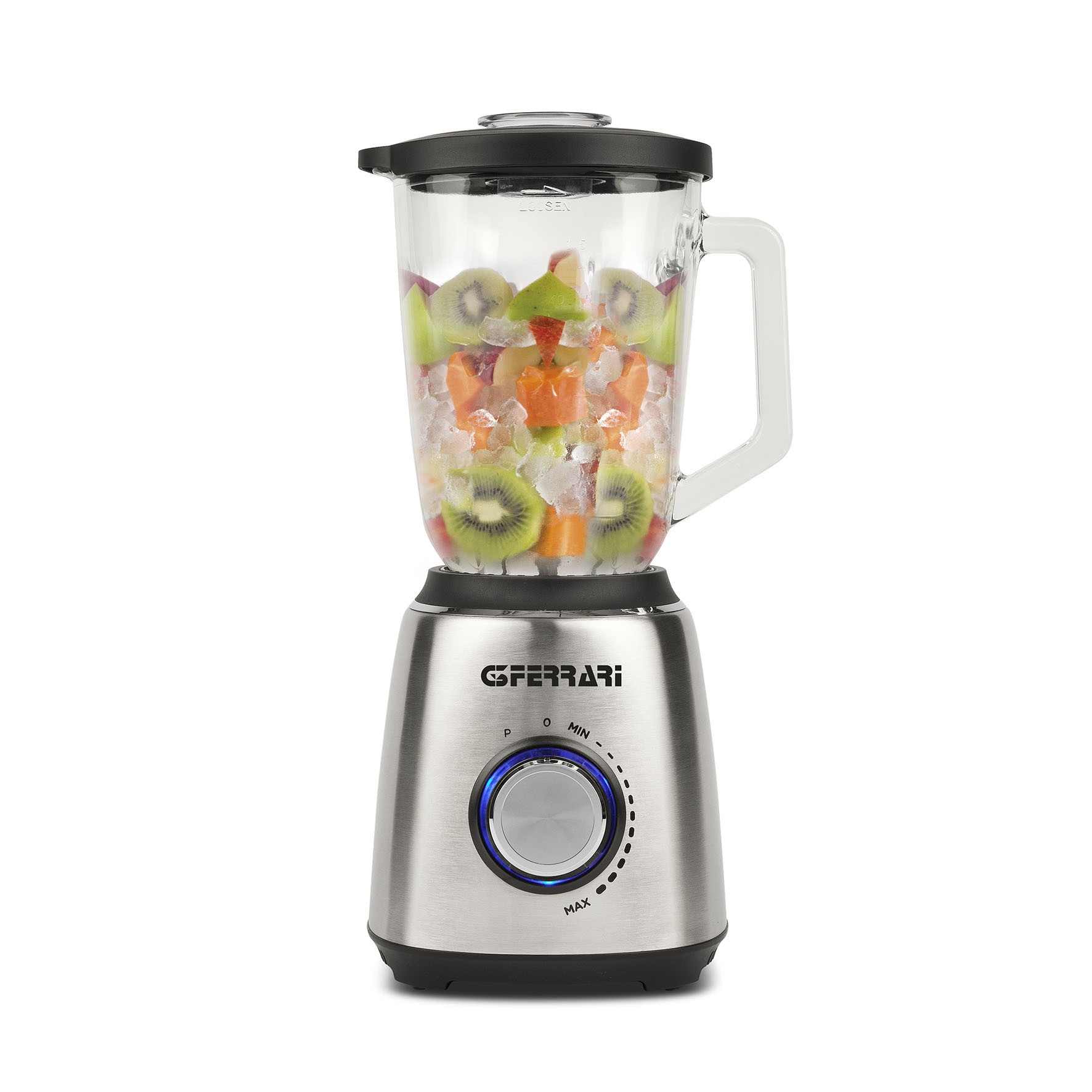 Blender tavoline G3 Ferrari Turbine G20165 1300W me enë qelqi 1.5L dhe 6 th inox është ideale për smoothie, akull dhe përzierje intensive.