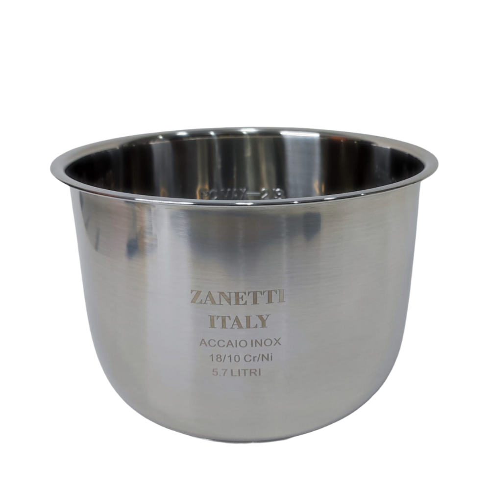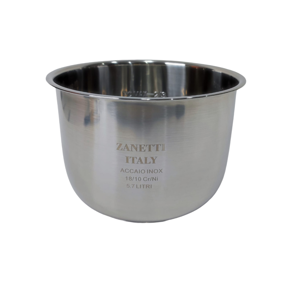 Enë Multikukeri 5.7L Inoks Italian 18/10 ZANETTI është zgjedhja ideale për ata që kërkojnë gatim të shëndetshëm, të qëndrueshëm dhe profesional në multikuker. Kjo enë e brendshme është prodhuar nga ZANETTI dhe realizuar me inoks ushqimor italian 18/10 CrNi , material i njohur për pastërtinë, rezistencën dhe jetëgjatësinë e tij.