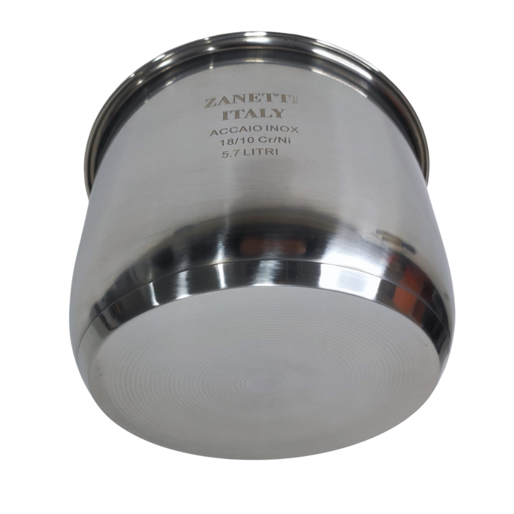 Enë Multikukeri 5.7L Inoks Italian 18/10 ZANETTI me fund të trefishtë. Gatim i shëndetshëm, pa kimikate, nuk ngjit dhe rezistente për përdorim afatgjatë.