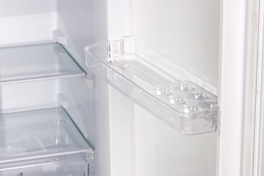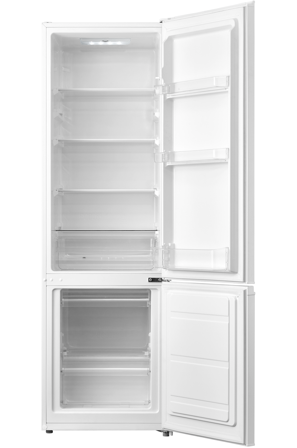 Dizajni i tij minimalist me ngjyrë të bardhë klasike e bën të përshtatshëm për çdo ambient kuzhine. Dyert janë prej metali të pikturuar me hapje të këmbyeshme, për fleksibilitet maksimal në vendosje. Me klasë energjie E, ky frigorifer kombinon efikasitetin dhe performancën me kosto të ulët.
