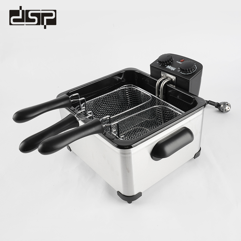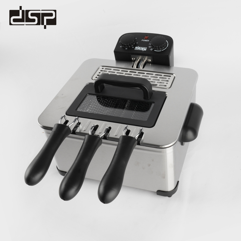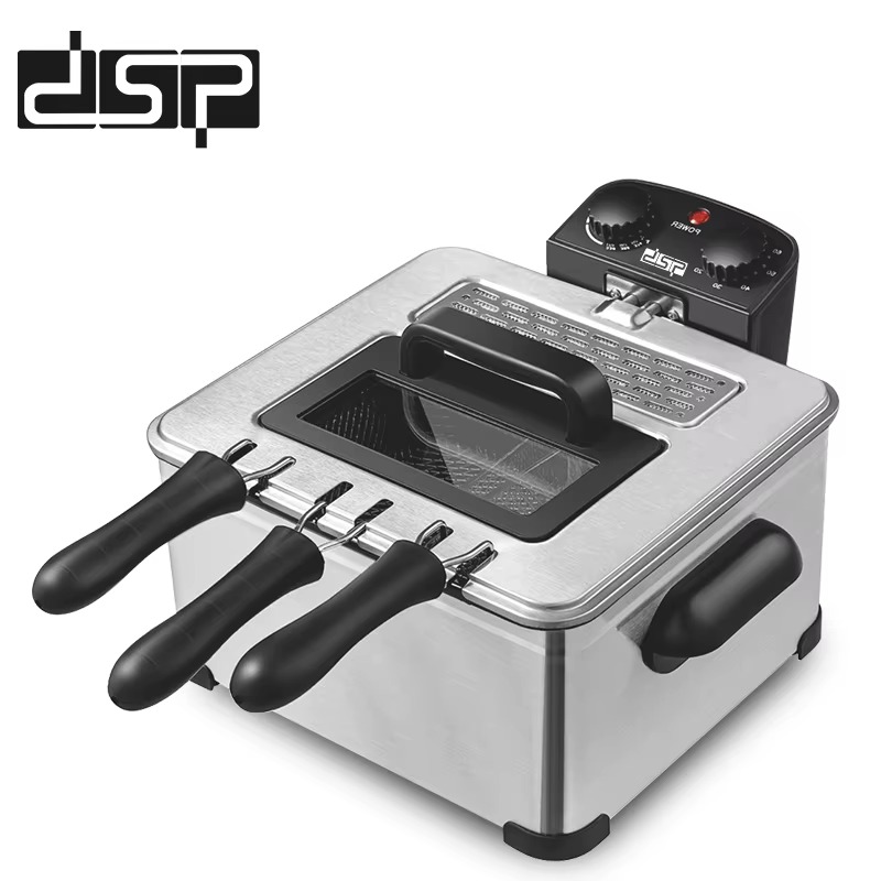 Fritezë Elektrike DSP KB2111 5L 2000W me 3 shporta, termostat të rregullueshëm dhe timer 60’. Rezistencë e zhytur për skuqje të shpejtë e të njëtrajtshme.
