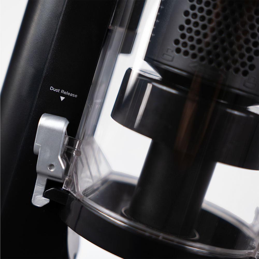 Dizajni 2 në 1 lejon përdorim si fshesë vertikale ose fshesë dore. Ena e pluhurit 0.6L zbrazet lehtë dhe lahet me ujë së bashku me filtrin. Pozicioni shtrirje 0°, zgjatimi për hapje të ngushta dhe furçat e përfshira sigurojnë pastrim në çdo cep.