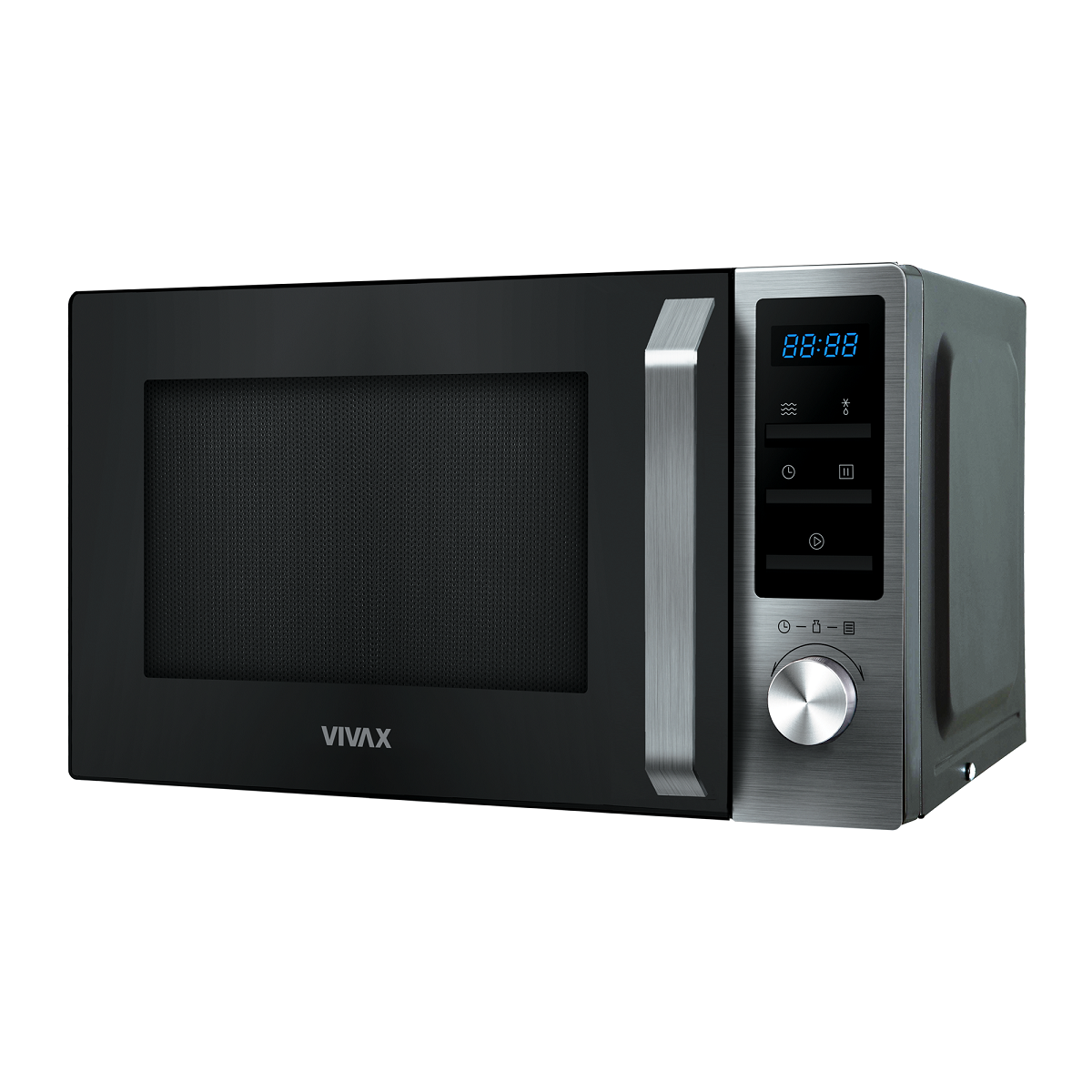 Furra me Mikrovalë VIVAX MWO-2079 BG 20L me grill 1000W, kontroll digital dhe ekran LED. Dizajn elegant inox & xham, ideale për çdo kuzhinë moderne.