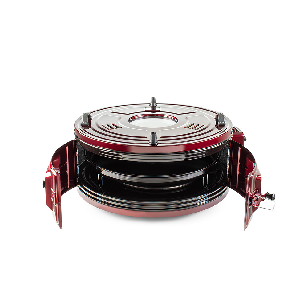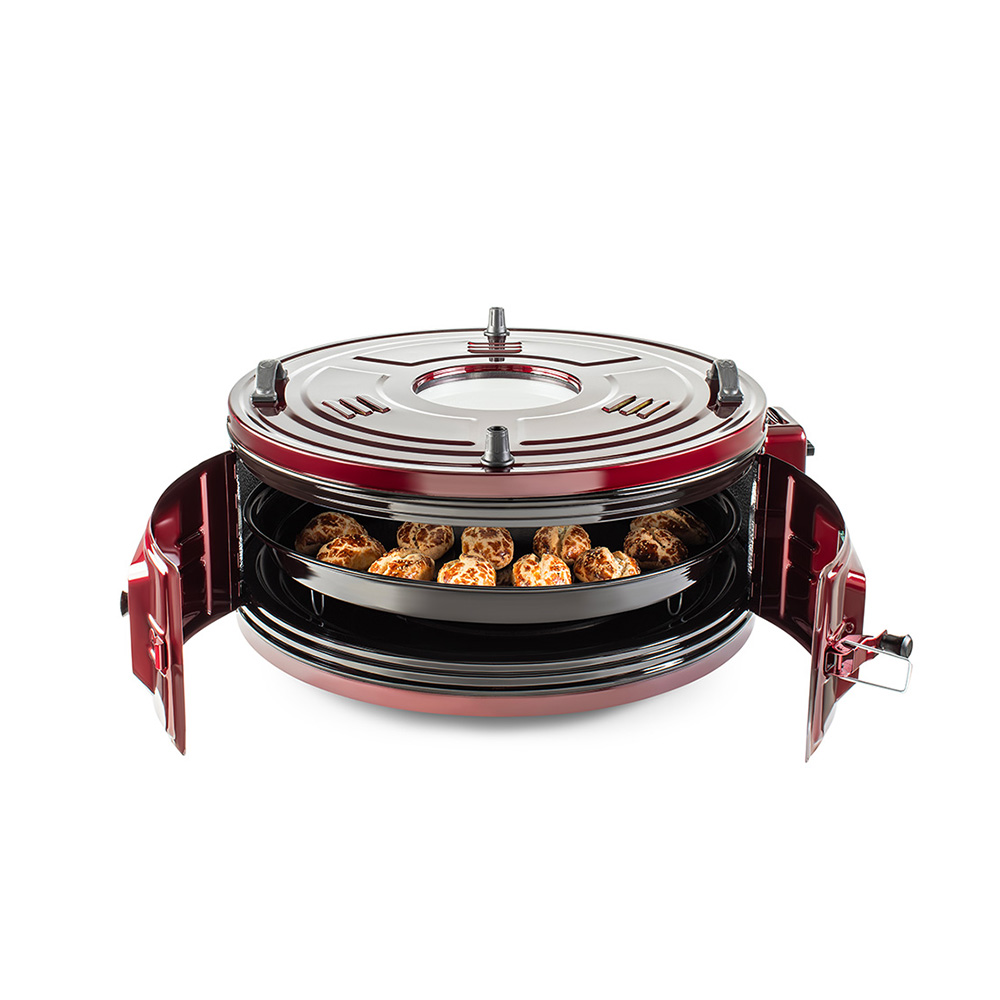 Dizajni rrethor është shumë praktik dhe lehtëson vendosjen e tepsive të mëdha. Tepsia 48 cm ofron hapësirë të bollshme për vakte familjare. Furra është e qëndrueshme dhe e ndërtuar me materiale rezistente ndaj temperaturave të larta. Për më tepër, pesha prej vetëm 8 kg e bën të lehtë për ta zhvendosur në kuzhinë, në vilë, ambient zyre apo kudo që nevojitet gatim i shpejtë.