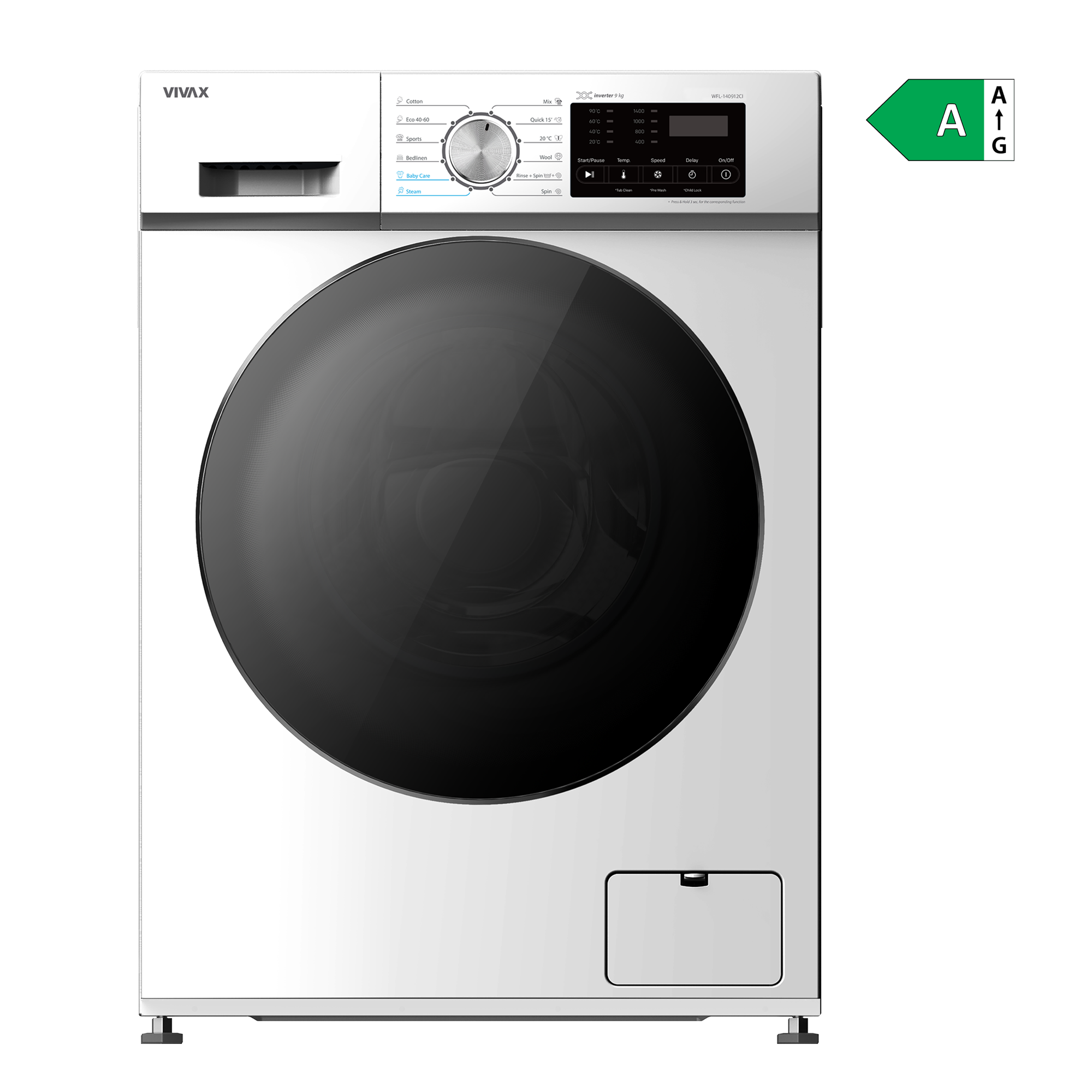 Lavatrice VIVAX Inverter WFL-140912CI me kapacitet 9Kg, 1400RPM dhe motor Inverter. Ofron 12 programe, funksion Drum Clean dhe klasë energjie A. Manual në shqip dhe garanci 3 vjet nga VIVAX.