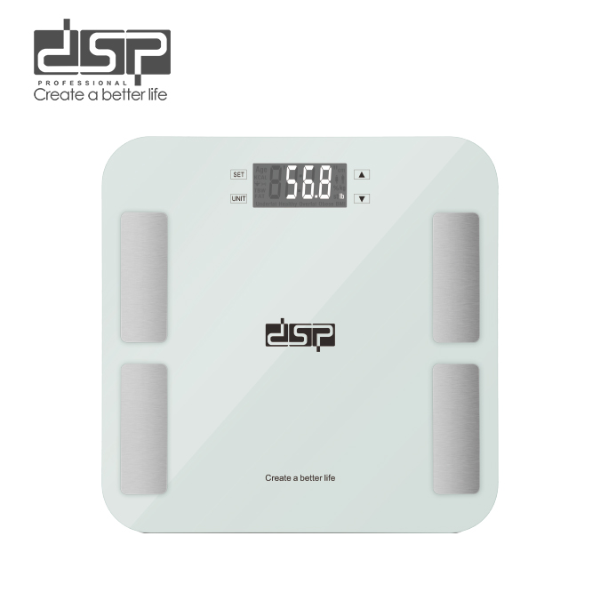 Peshore Trupi DSP KD7046 është një peshore inteligjente që mat jo vetëm peshën, por edhe parametrat kryesorë të trupit, duke ju ndihmuar të monitoroni shëndetin çdo ditë. Peshore Trupi DSP KD7046 përdor sensorë të integruar inox dhe teknologji të avancuar matjeje për të ofruar rezultate të sakta dhe të qëndrueshme.