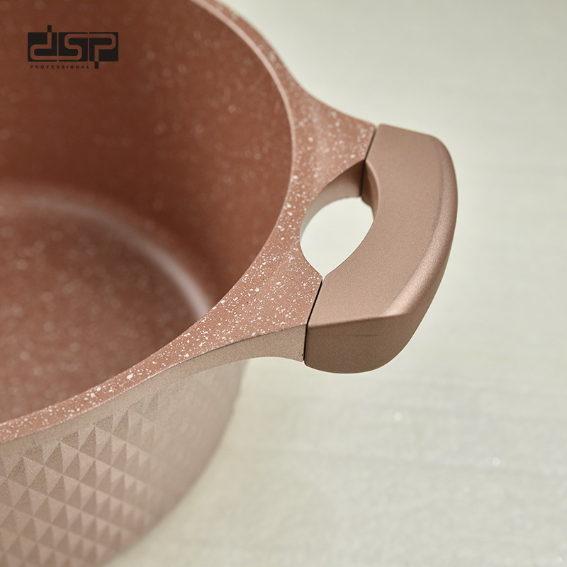 Struktura die-cast e bën më të rëndë dhe më të fortë se tenxheret e zakonshme, duke ruajtur nxehtësinë më gjatë dhe duke kursyer energji gjatë gatimit. Tenxherja DSP është e sigurt, higjienike dhe e përshtatshme për përdorim afatgjatë.
